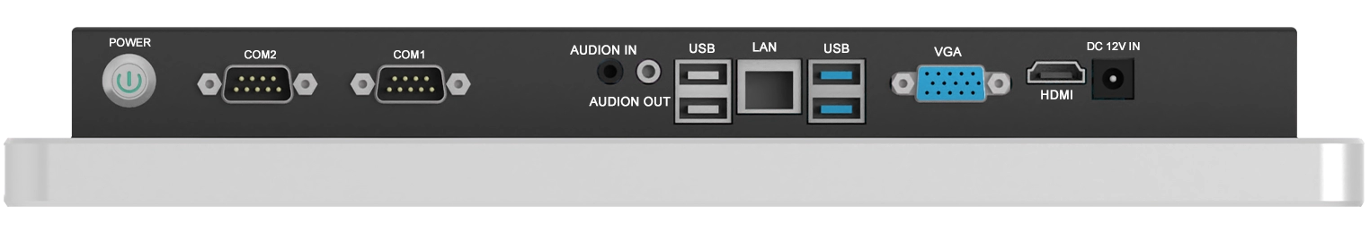 顯示埠:HDMI、VGA、COM、MIC、LAN、USB、DCIN、音訊