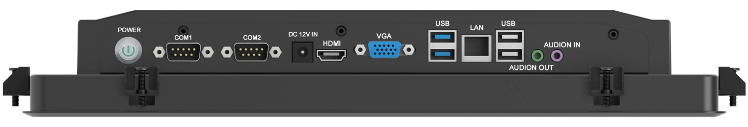 顯示埠:HDMI、VGA、COM、MIC、LAN、USB、DCIN、音訊