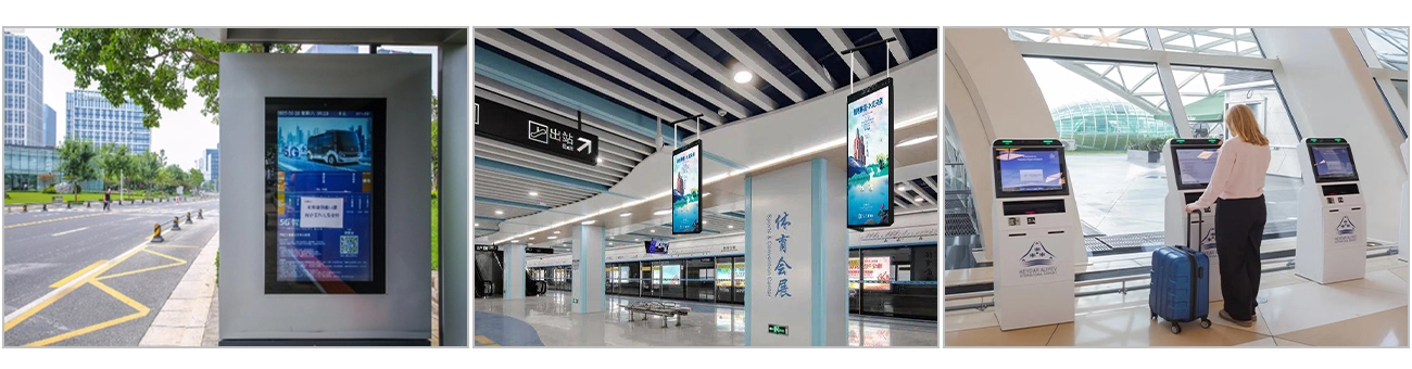 目前,採用互動式觸控設計的智慧交通設備,例如售票機、機場自助服務系統和旅客資訊系統等,已廣泛應用於火車站、地鐵站、汽車站、高鐵站和機場。透過人臉辨識、目標辨識、智慧感測器、環境感知、人臉支付和人臉辨識門禁等功能,將智慧科技與商業終端結合,助力智慧城市新時代的到來,並提升使用者體驗。