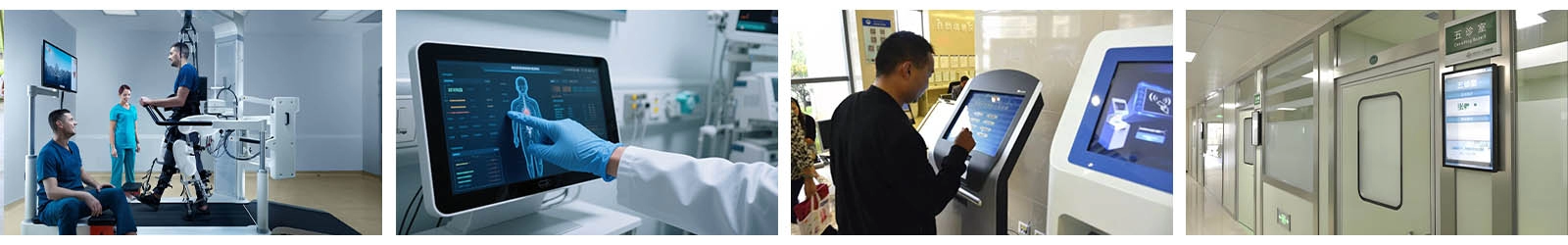 自助終端設備:智慧自助終端通常包含人機介面,使用者可透過設備提示完成操作。其主要特點是自助服務。智慧自助終端的出現反映了社會向數位化和智慧化方向發展的趨勢,大大減少了患者登記、病歷列印和自助支付等環節的排隊現象,使用戶無需他人協助即可快速滿足需求。