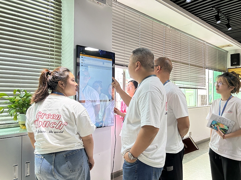 介紹完畢後,傅功帶領賓客參觀了綠觸的產品展廳,展示了各種獨特的廣告展示樣品。