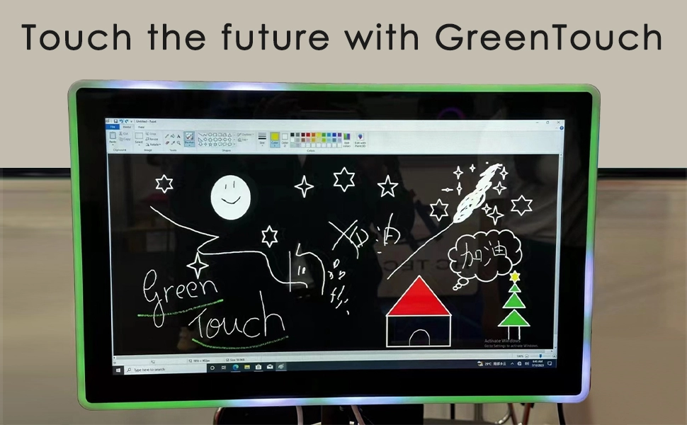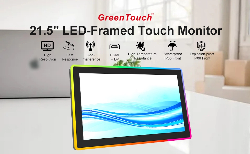 格林觸控 開發了一款獨特的高性能觸控顯示器,主要應用於商業場所。該顯示器目前提供四種標準尺寸:21.5英寸、27英寸、32英寸和43英寸。外緣採用時尚炫彩的LED燈條設計,並配備LED燈光調整遙控器。使用者可輕鬆選擇多種RGB七色(紅色、綠色、藍色、白色、黃色、橙色、紫色)閃爍模式,支援358種不同的燈光模式。自訂選項包括顏色合成、速度、方向和順序。顯示器採用高清TFT液晶螢幕、靈敏的電容式觸控螢幕和A+級原廠工業LED螢幕,相容於Windows、Android和Linux系統。