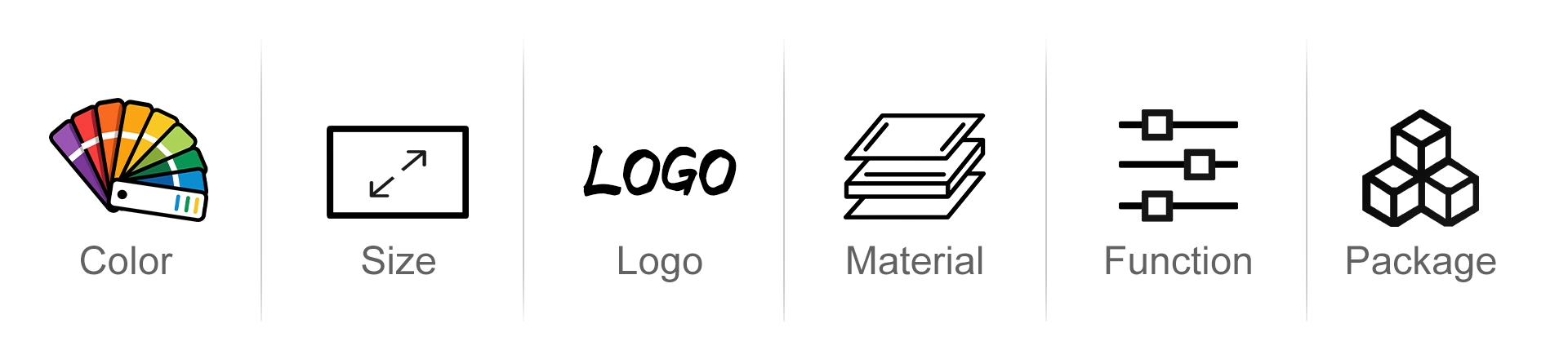 我們提供各種功能客製化項目,包括指紋採集器、攝影機、麥克風、亮度調節器、寬溫度範圍和寬壓力範圍感測器、紅外線感測器等。