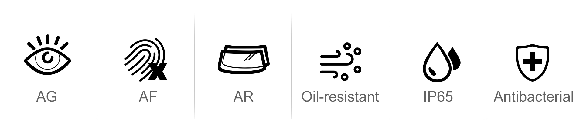 根據不同行業客戶的特點,產品在特殊環境下的防護性能可以進行客製化,以適應各種惡劣環境的應用,例如 AG、AF、AR、耐油和抗菌。